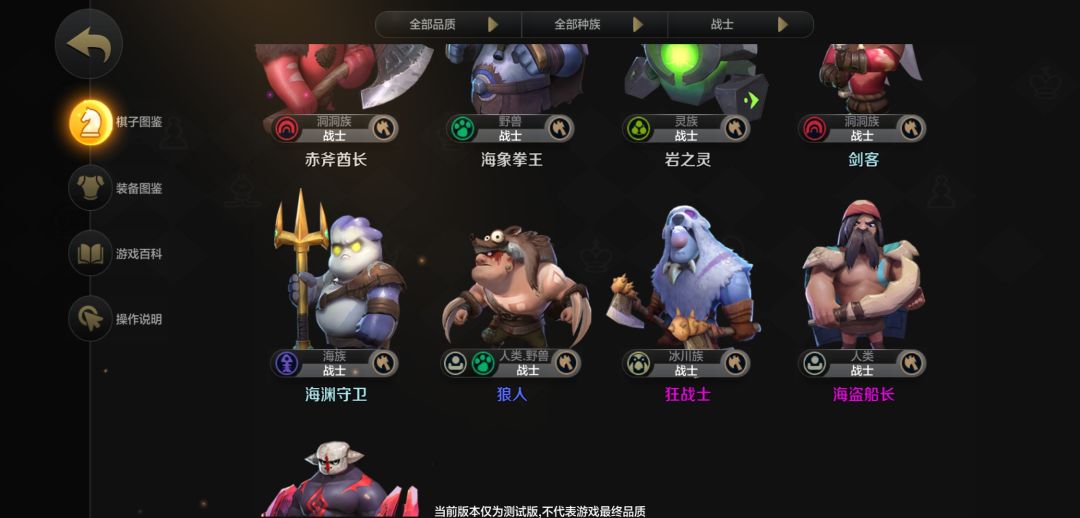 今天给大家讲一下精英战,精英战顾名思义是要拿战士的,目前这个游戏的战士有9个,如下图