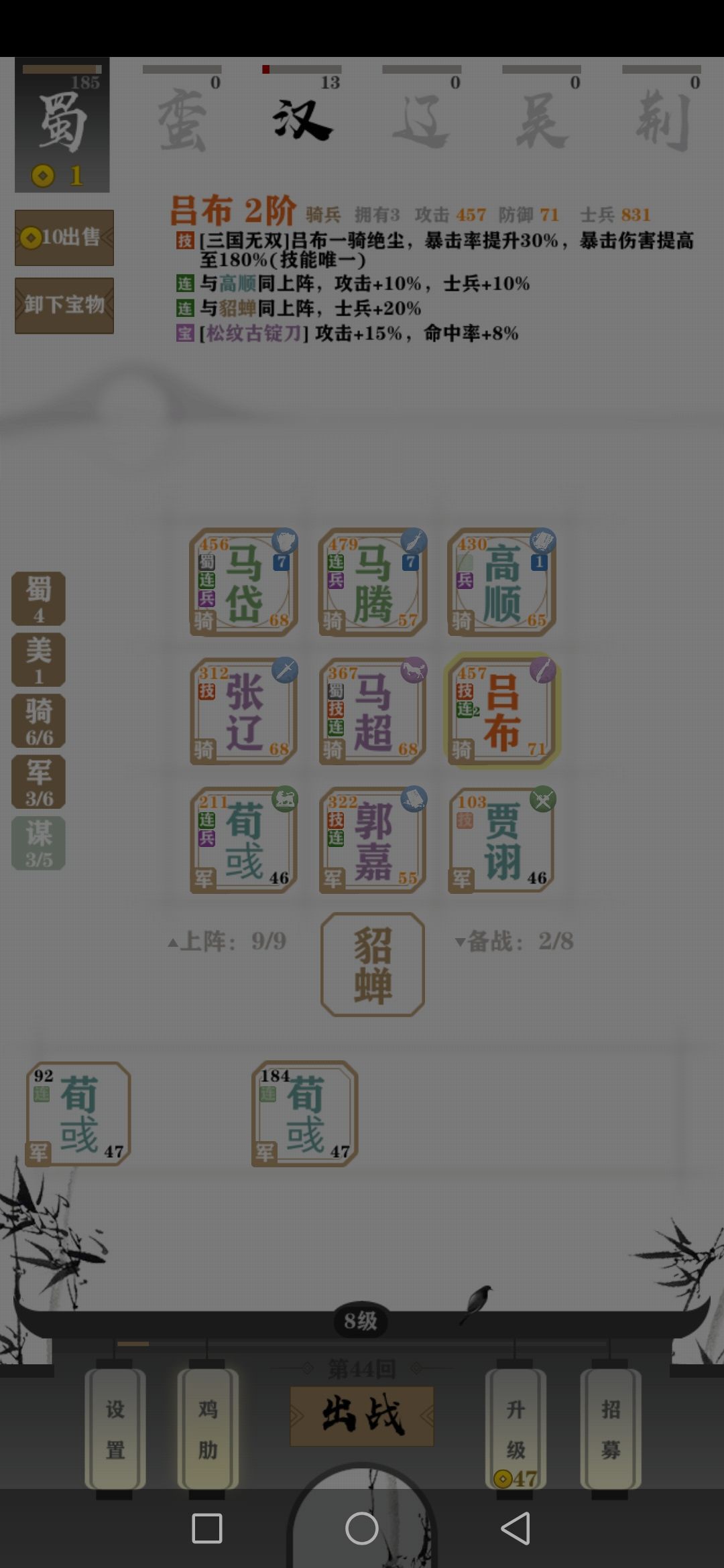 牛批,特别牛批,前期有了三马就已经无敌了建议把三马养到三阶,马超的话二阶就够了,看到有高顺立马就买为了吕布提前做准备,下面有视频,你们可以自己看