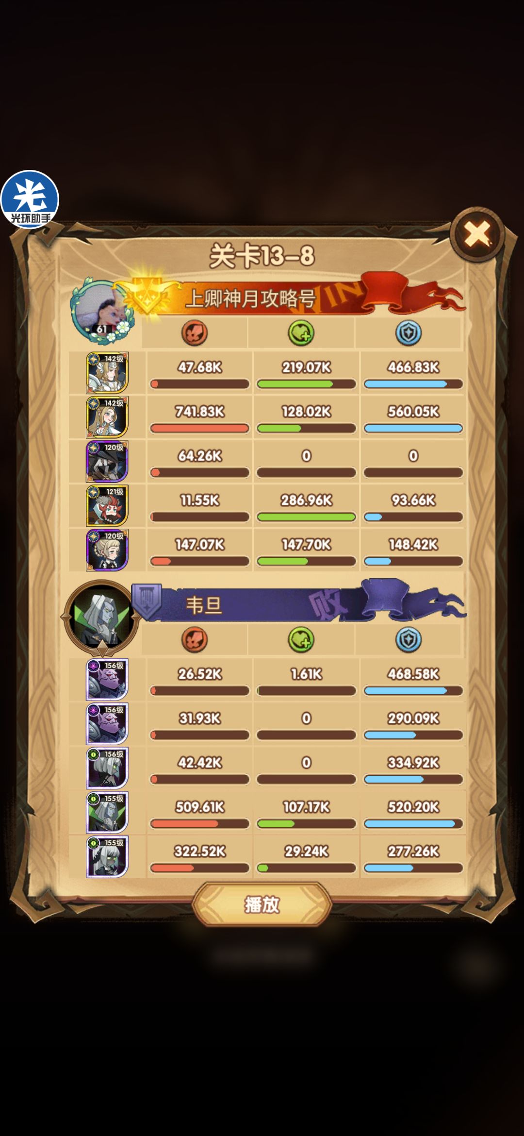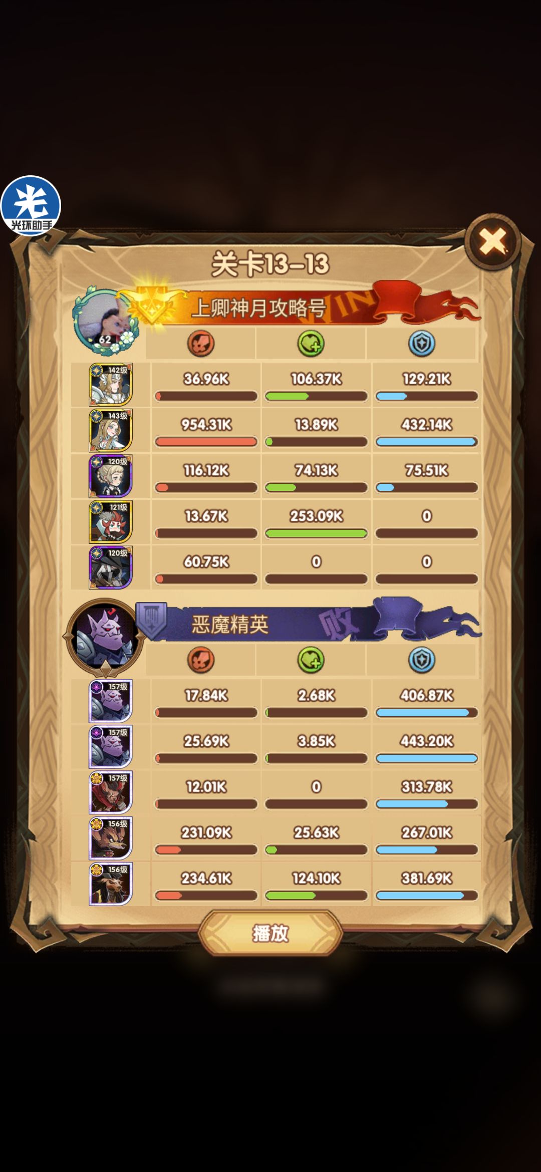 13-7 多re,装备跟练度品阶等级跟我一样必过!(这关是越两倍极限推图)