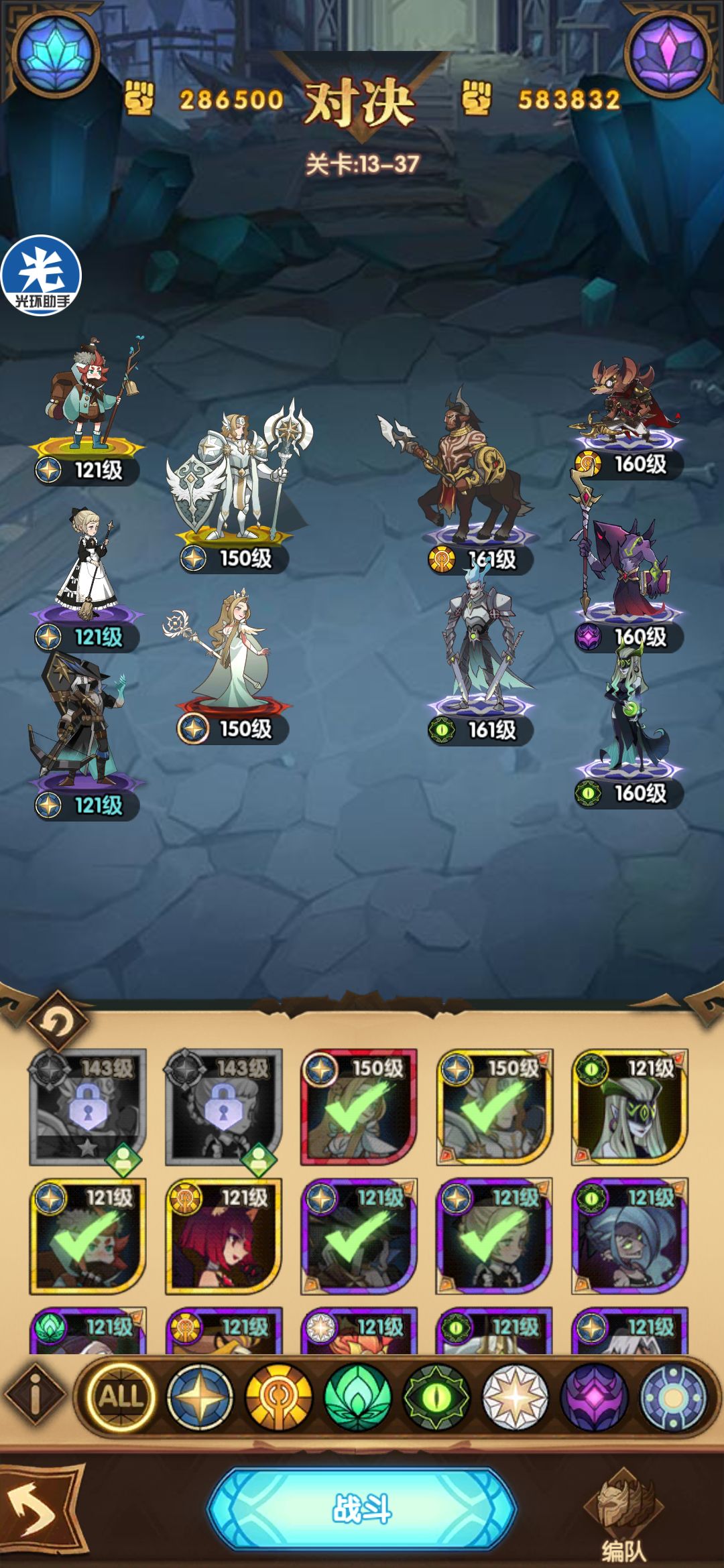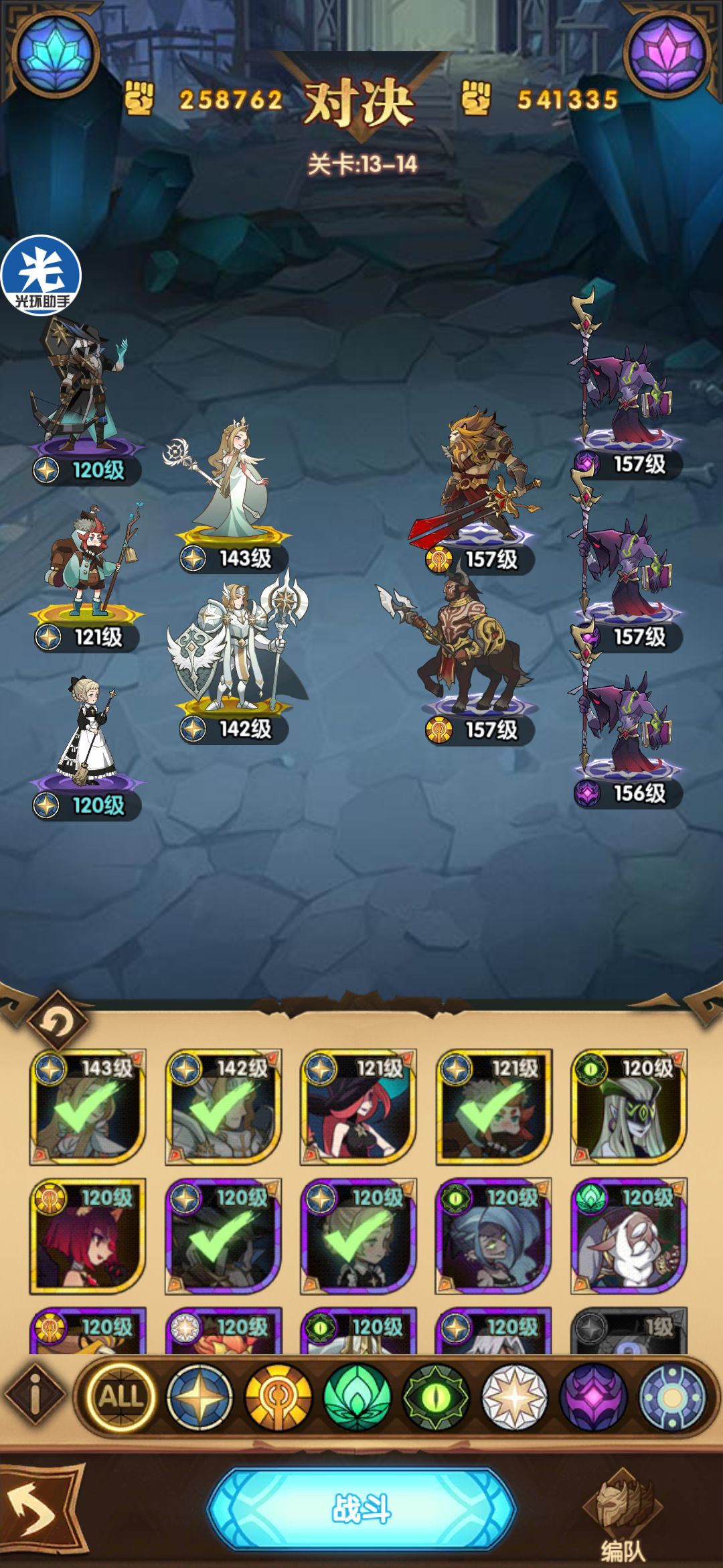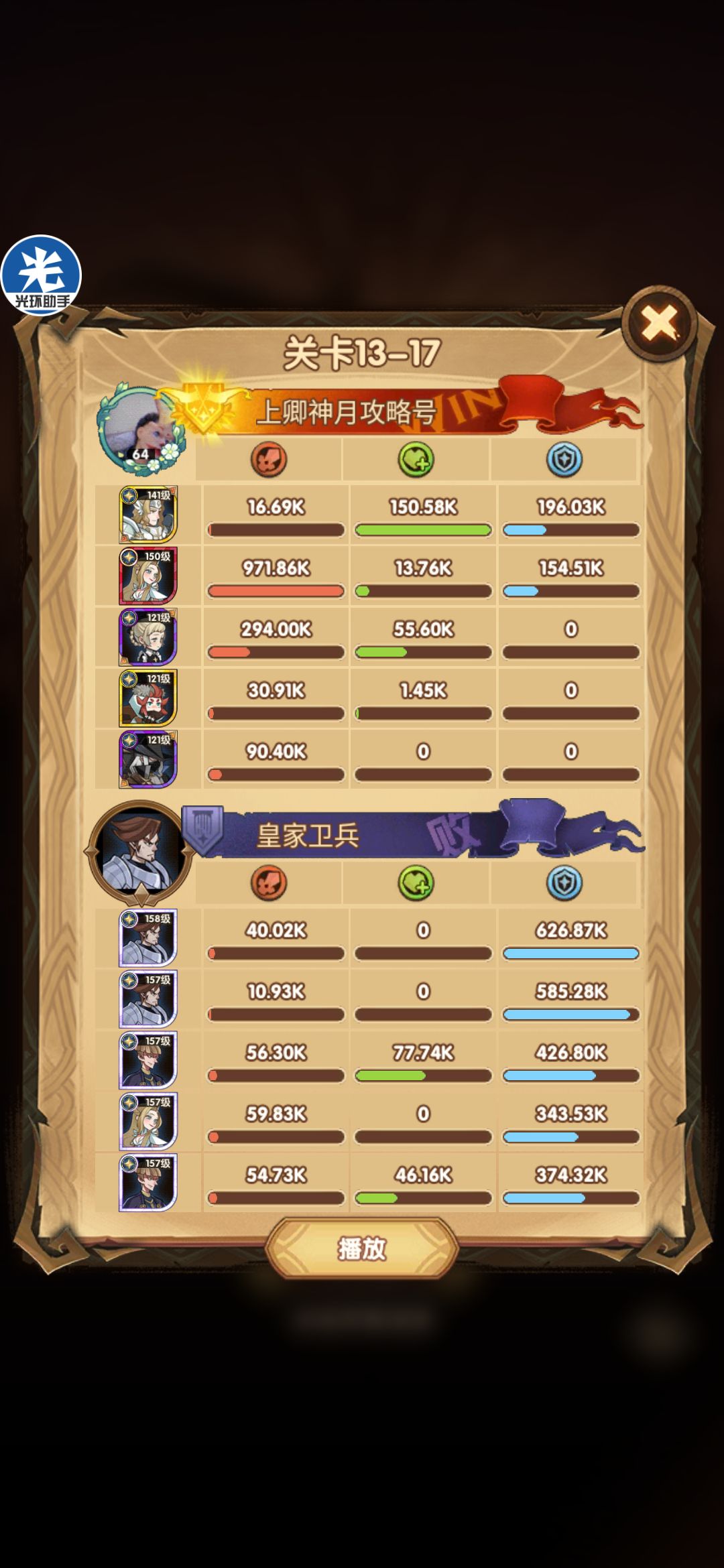 13-15 这关索性把光女的品阶提升到了红,既然红都红了,那就索性走纯耀光流先。(之前有教你们,保留一个金+火女这时候就可以派上用场!别告诉我没有?)结果还是过不去,前排光盾顶不住狮子的伤害,这是第一次借佣兵!(不借的话,要不就买红武器,要不就再卡两三天,你高兴就好)