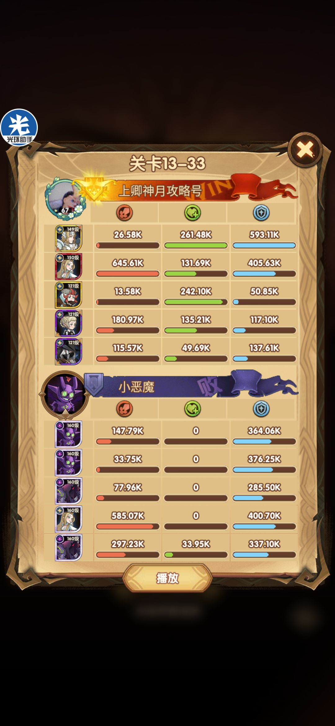 13-33 (同13-21敌对阵容一样,所以用同样阵容站位跟神器对付)