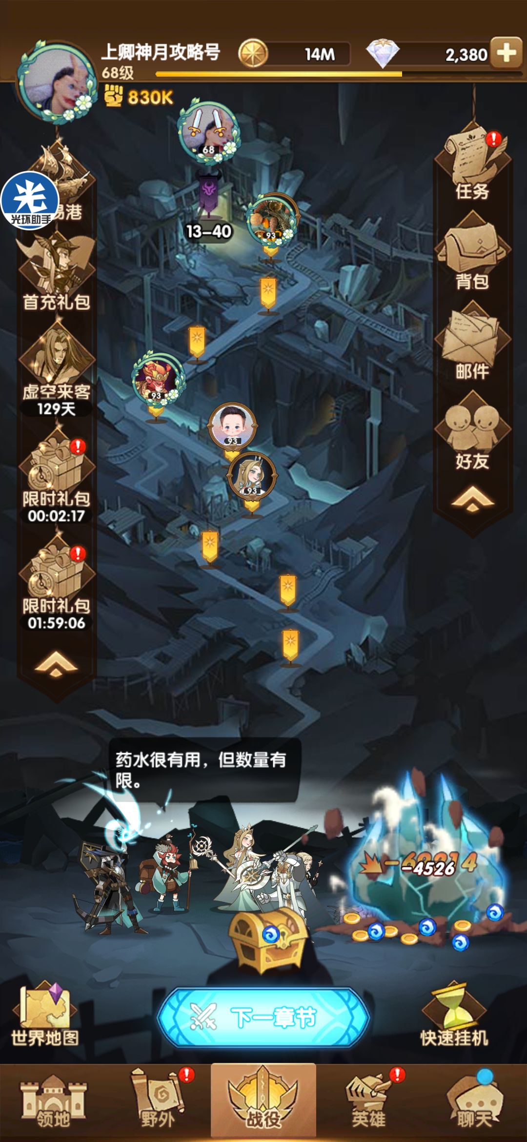 合理的装备提升,英雄品阶提升,还有英雄阵容的搭配才是过图的关键!