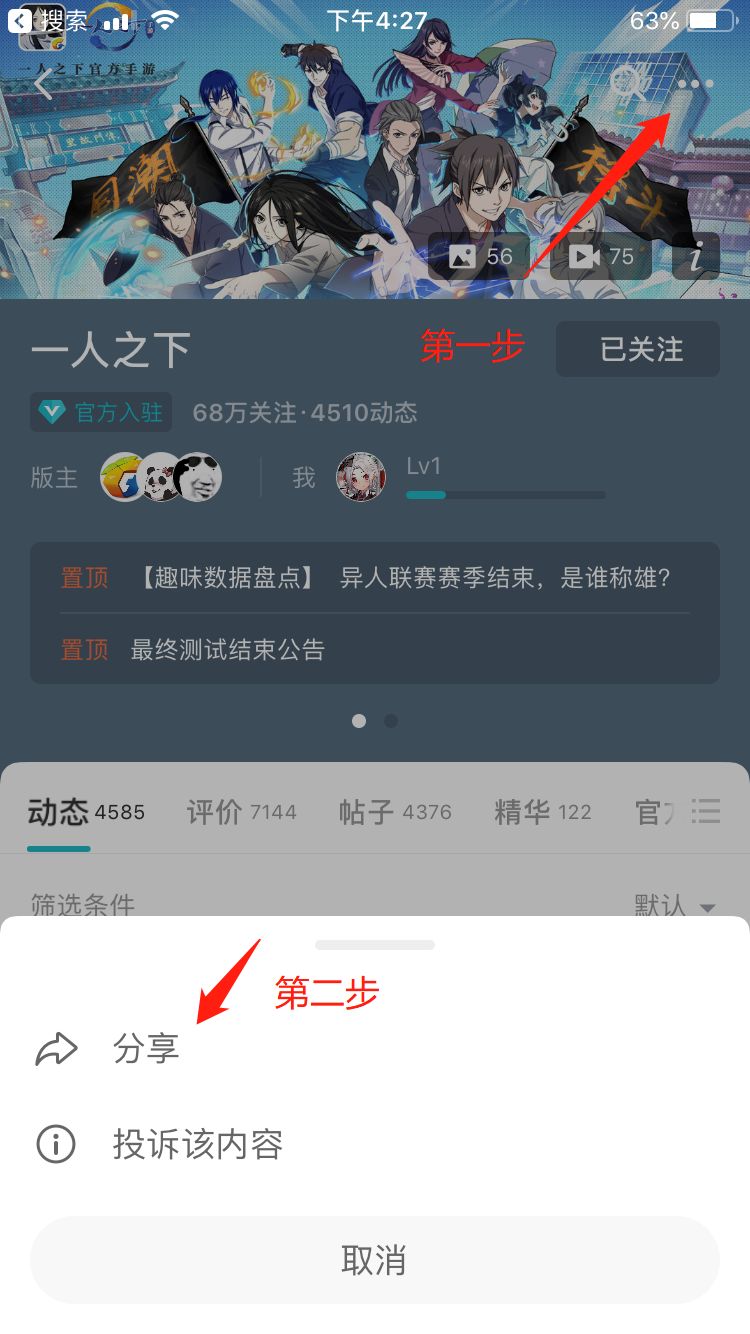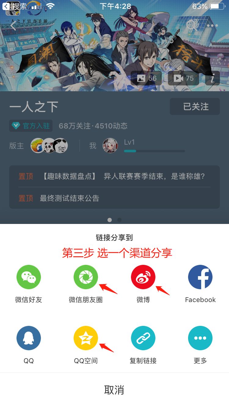 2. 分享【《一人之下》手游详情页】到【微信/QQ空间/微博】中任意一个,并把分享成功的截图回复在本帖评论区