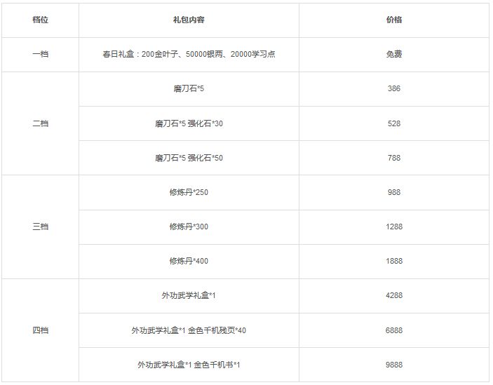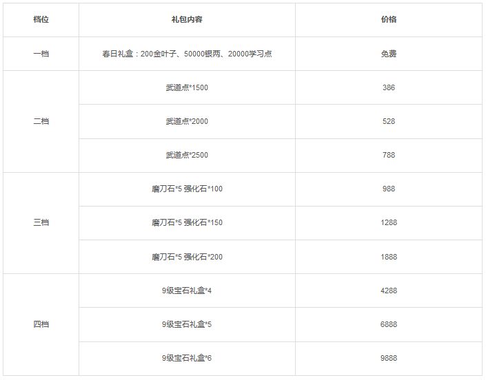 活动一:活动期间将限时上架春日礼包,礼包内容如下: