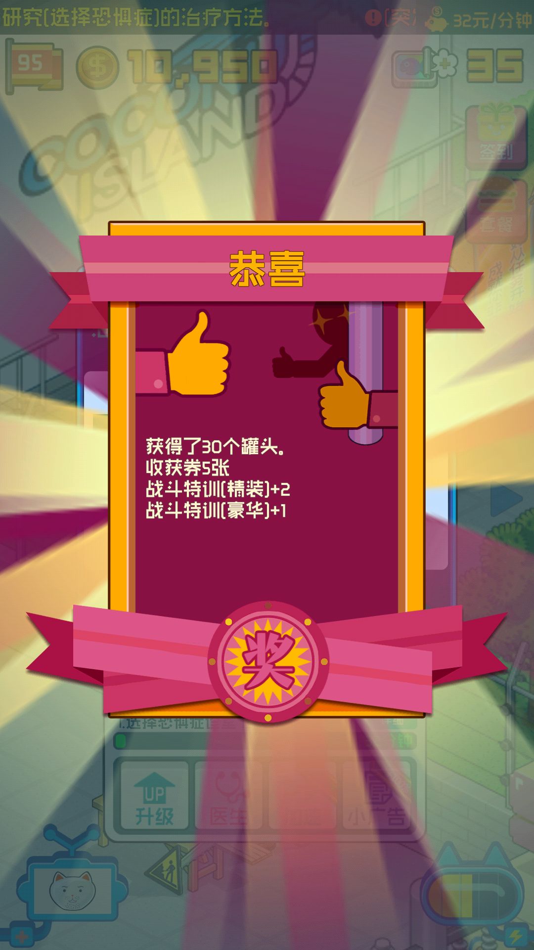 ※ 【阳光普照任性大礼包】登录游戏即可在医院公告板领取道具【罐头*30、收获劵*5、战斗特训[精装]*2、战斗特训[豪华]*1】