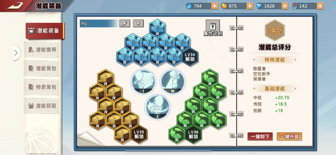 更新下潜能和天赋,闪避突破我一般不给对手抢断机会所以没必要升,还有个强化上篮感觉也是送帽就也没升,主要还是因为穷。