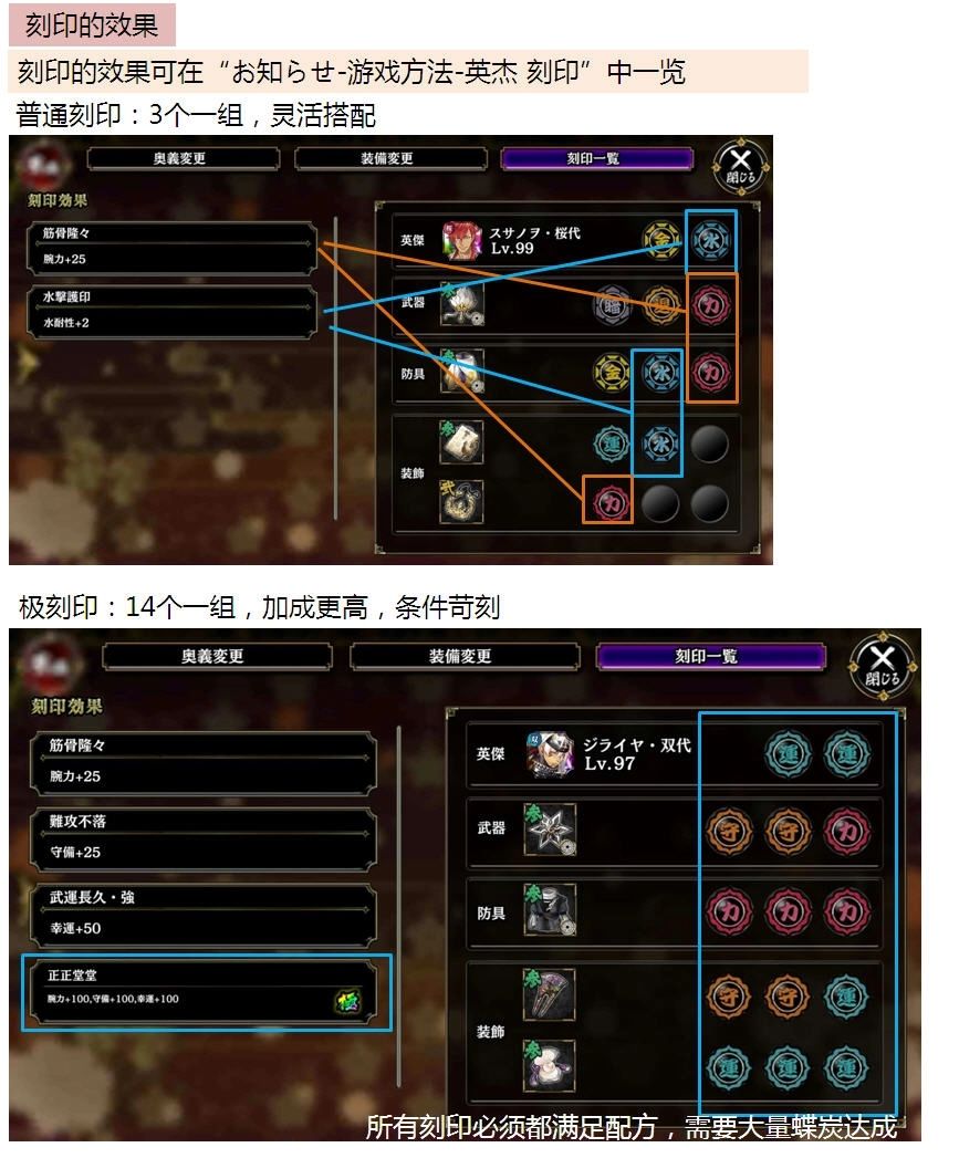 很多刚接触一血卍杰的玩家都不知道刻印的具体作用,因此我找到了贴吧里个人认为比较系统的攻略贴分享给大家,感谢作者大佬ww