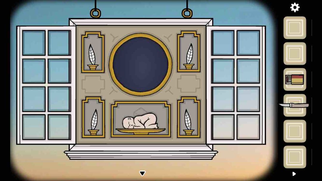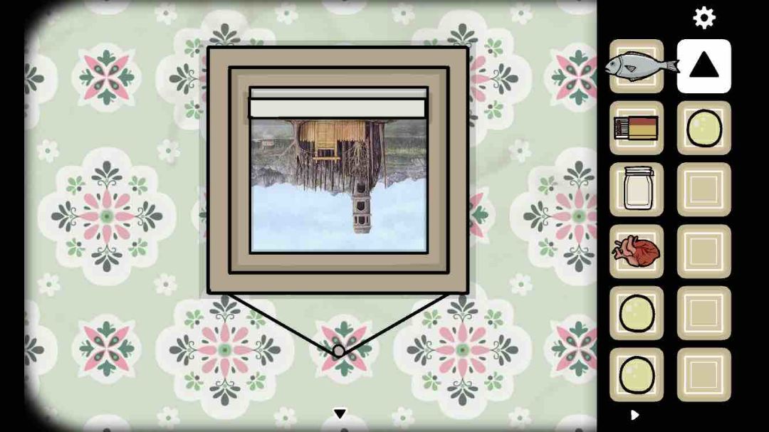 去看天堂岛那个相框,把它撕开一个角,使用【三角形钥匙】,撕掉图画(拖动),得到【弹珠】