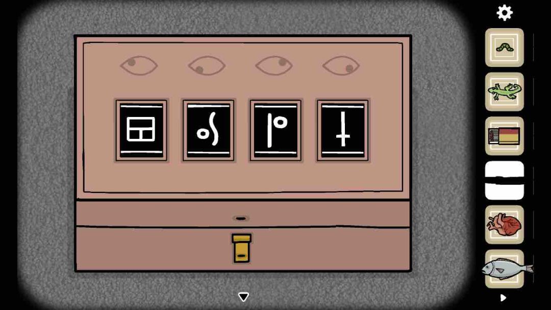 输入你刚才在四个房间的镜子里面看到的四个符号,按照『心脏』『鱼』『壁虎』『虫子』的顺序。如图,得到【蛋】