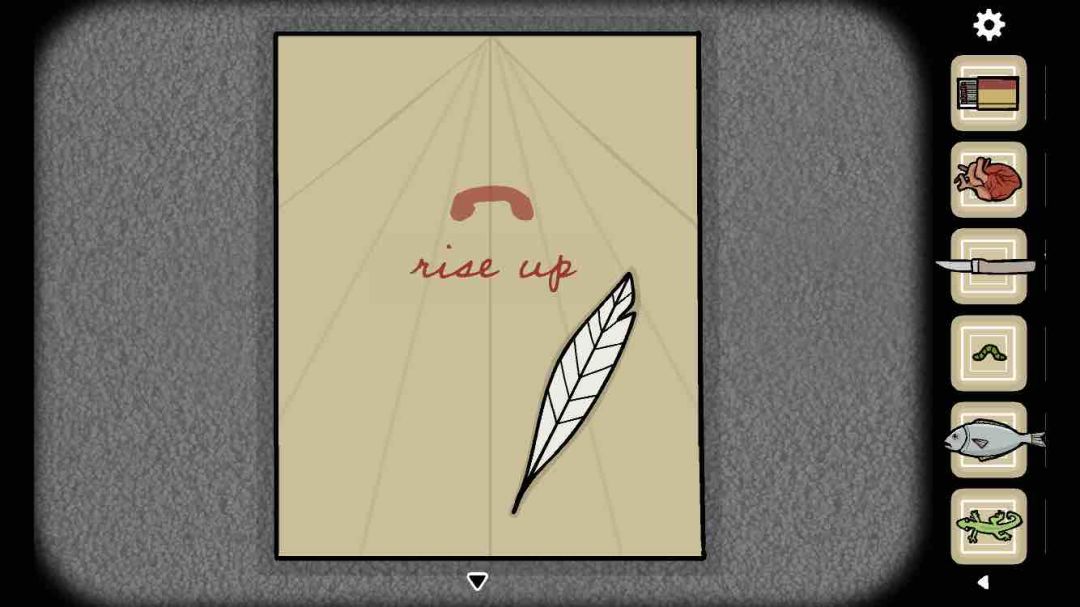 飞来一只纸飞机,把它打下来,再拆了它,得到【羽毛】,和“rise up”。