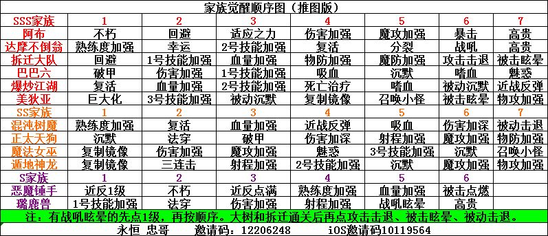 萌新来看,常用家族觉醒导视图!