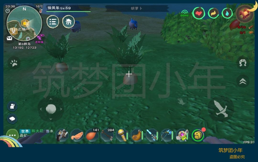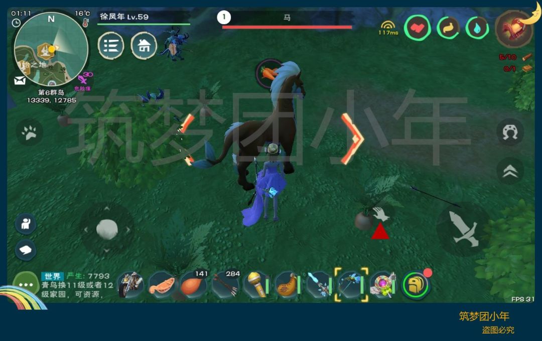 大家在出生点一直砍树敲石头发育到6级之后,就可以解锁坐骑鞍,这个时候可以先暂时抓一只灰马代步,出生点有胡萝卜(灰马爱吃胡萝卜,陆行鸟饲料也需要胡萝卜)