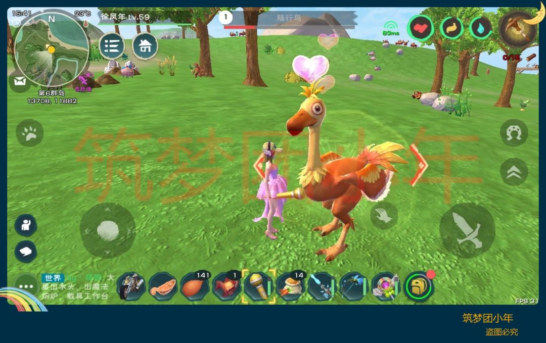 这里建议前期抓陆行鸟,饲料简单,吃的不多,而且速度不低,负重前期完全够用