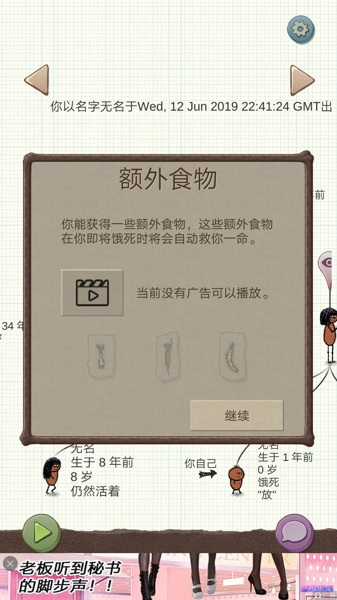 5.重新连接广告框正常弹出(吃食物那个)并显示当前无广告可播放。
