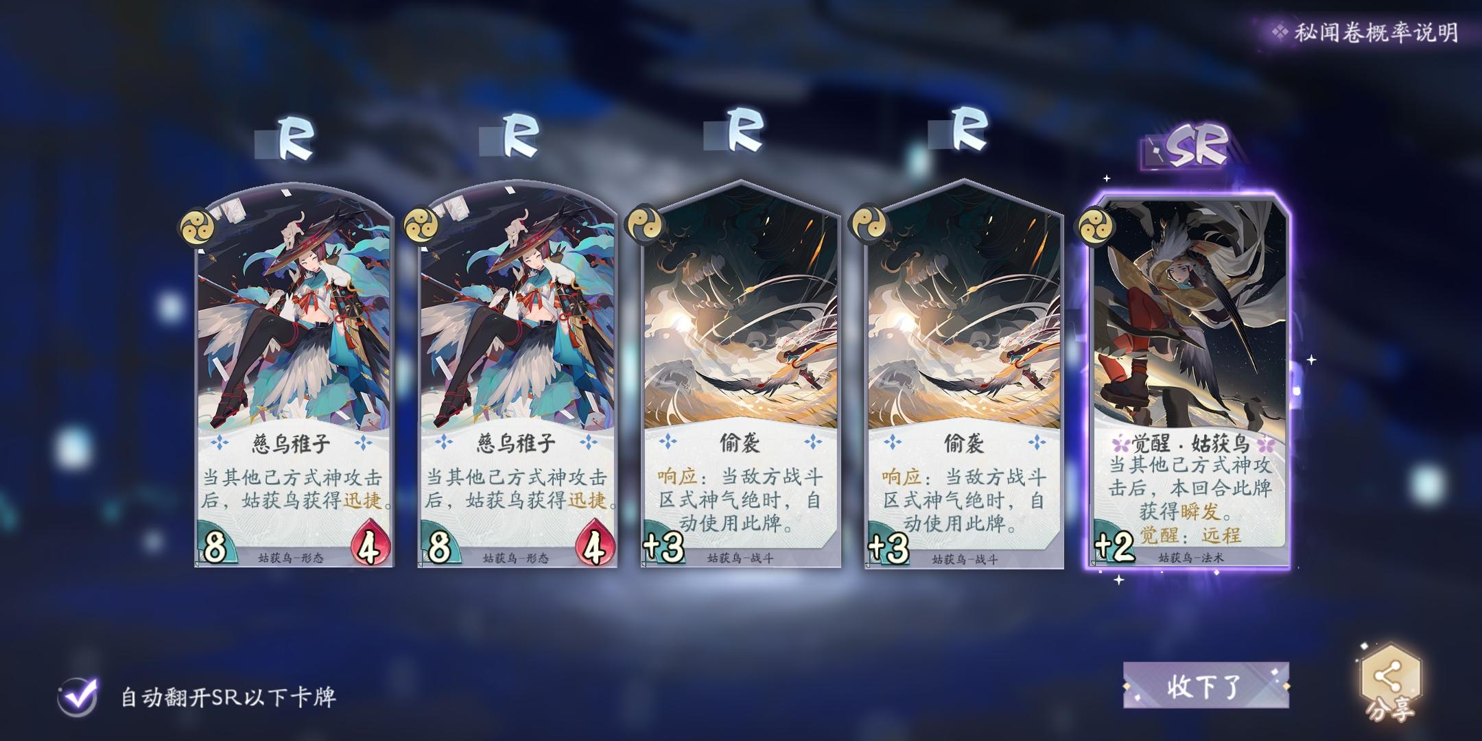 5张sr,一张ssr,挺有良心的