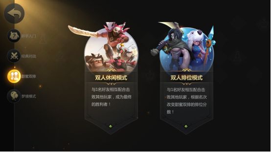 双人排位模式:与1名好友互相配合击败其他玩家,根据名次改变甜蜜双排的排位分数。