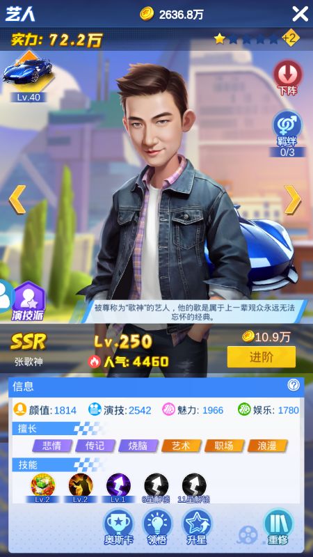 实力的提升根据艺人的实力而不同,给艺人配备好车(最强艺人配最好的车依次类推),以我昨天车辆记录的培养情况为例: