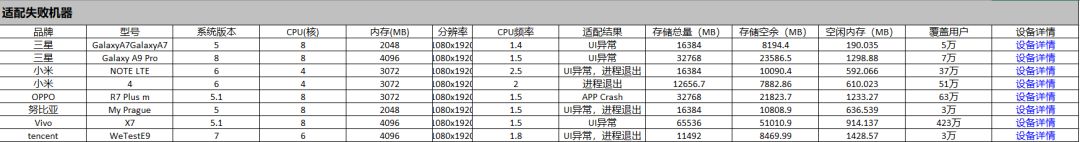 未通过机器细节(如果你是以下机型,不能参与测试的可能性较大,我们尽快优化):