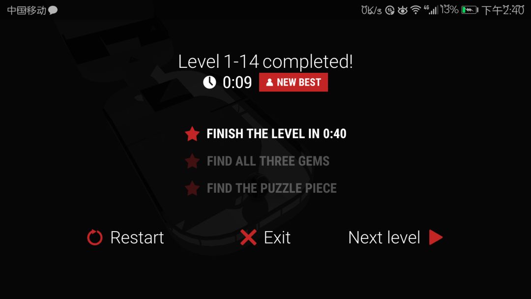 最先发现的是第1-14,从开始的平台飞出,落到最底层的靠墙的垫子上,这时会弹起很高(致命),但是别怕!最底层的心前面有个莫名其妙的垫子,落到哪里即可。(P.S.我试了一个半小时),得到成绩如下。