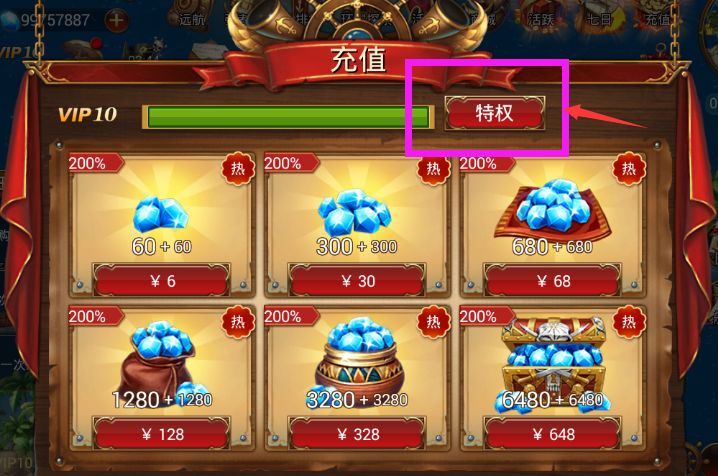 1、 如果条件允许,可以花10元充个VIP1,领取天赋果实,可以给主角船长学习技能,性价比很高。