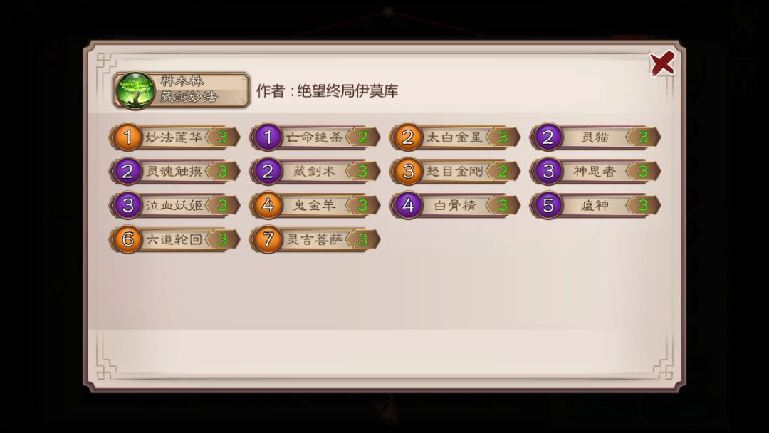 藏剑术+妙法莲华一般能拿3-5张牌,妙法莲华还可以配合亡命和六道。