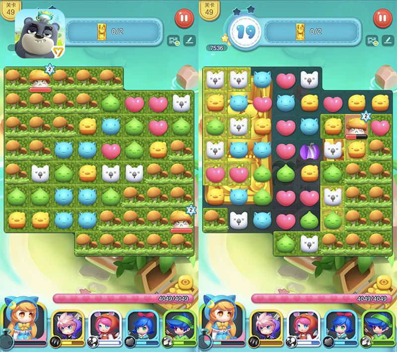 《童话萌消团》的冒险关卡分为怪物冒险关卡和首领冒险关卡,对于萌新玩家,要注意这两类关卡的打法是不相同的。以“暮光镇”章节的49关收集元素为例,在场的小蘑菇每2步就会生成多个蘑菇元素遮挡棋盘,此时玩家不该纠结如何击杀蘑菇,而是尽可能四消生成炸弹和火箭,尽快清除棋盘上的蘑菇元素。