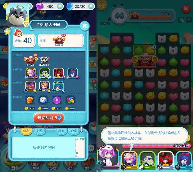 在全新的“英雄后备队”玩法中,玩家可以在原有的4个上阵英雄的基础上,额外选择3个英雄作为候补英雄,在战斗时轻松切换,不仅能补充对应血量,新登场的英雄配合“毒苹果”等能量补充道具,一出场就能释放英雄专属技能。全新战斗玩法的上线,不仅能提升英雄上阵的策略性,也相对降低了闯关难度,玩家能感受到更多休闲消除的乐趣。