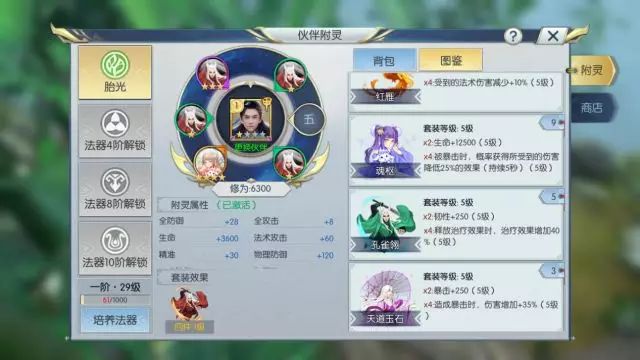 每个附灵镶嵌位置,都能让道友修为上升,同时还可以堆叠相同附灵的套装效果!追求“奶量”的道友首选孔雀翎,它的4件套效果可大幅增加治疗量!