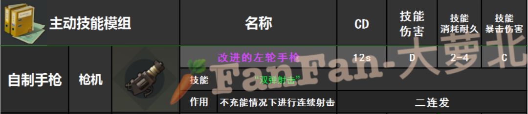 连射两发,技能同普通弹药一样,伤害享受暴击效果。