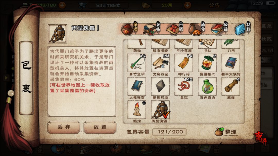 这采集效率我个人以为是速度,不会影响采集到的资源数量,可是早上发生的一件事让我不得不怀疑我的想法,我放在一个10的松木上,收取后只有6个,却没有树枝,这有点让我想到是不是这种傀儡只能采集到资源的60%。