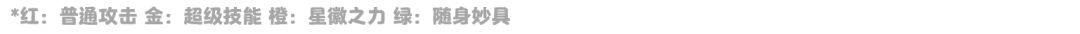 特殊数据:(排列顺序:普通攻击-超级技能-星徽之力-随身妙具)