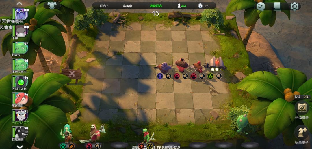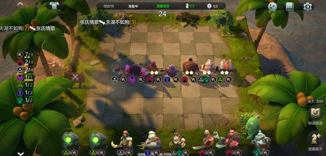 老办法升到6级的时候我们应该有超过50块了,边把阵容都升到2星边留钱升七级,还是4经验升7级,然后留意美杜莎和三个紫卡战士,有美杜莎先上美杜莎,紫卡战士可以适当先替换一些2星其他战士