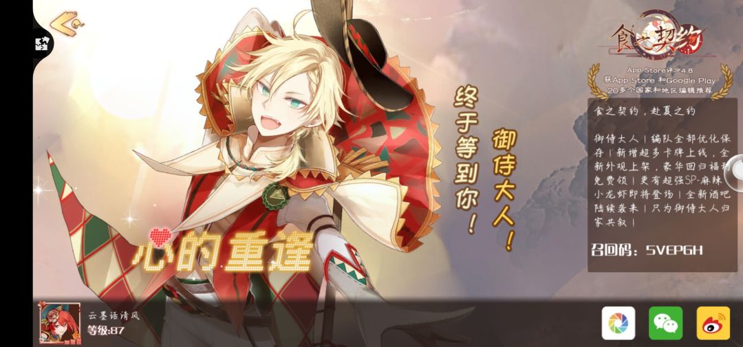 有没有回归御侍愿意填下回归码啊啊啊!真的非常非常非常非常非常非常感谢回归大佬