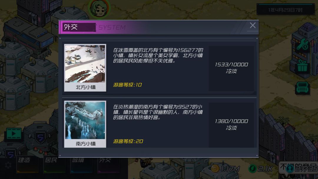 ~科技点积攒太快,这个大家别喷我,虽然以后后期还有新科技,可就目前的这个,我只用了不到1个月就全升级满了,确实又感觉失去了些乐趣(自虐哈),或者可以考虑把内部升科技改为外部建筑升级换外观。
