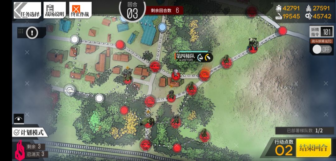 接着将己方梯队下移,干掉绿人,结束回合。然后旁边的绿炮会来打你,干掉绿炮。