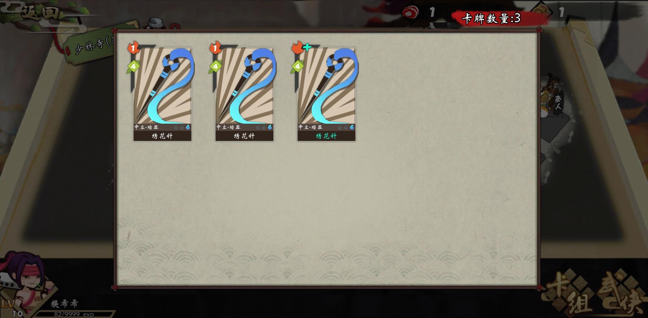 豪侠:卡组:一张少林棍法,一张杨家枪或天下无狗,两三张 护甲卡 装备:保留护甲和开局加护甲的两套 欢迎讨论其它的套路