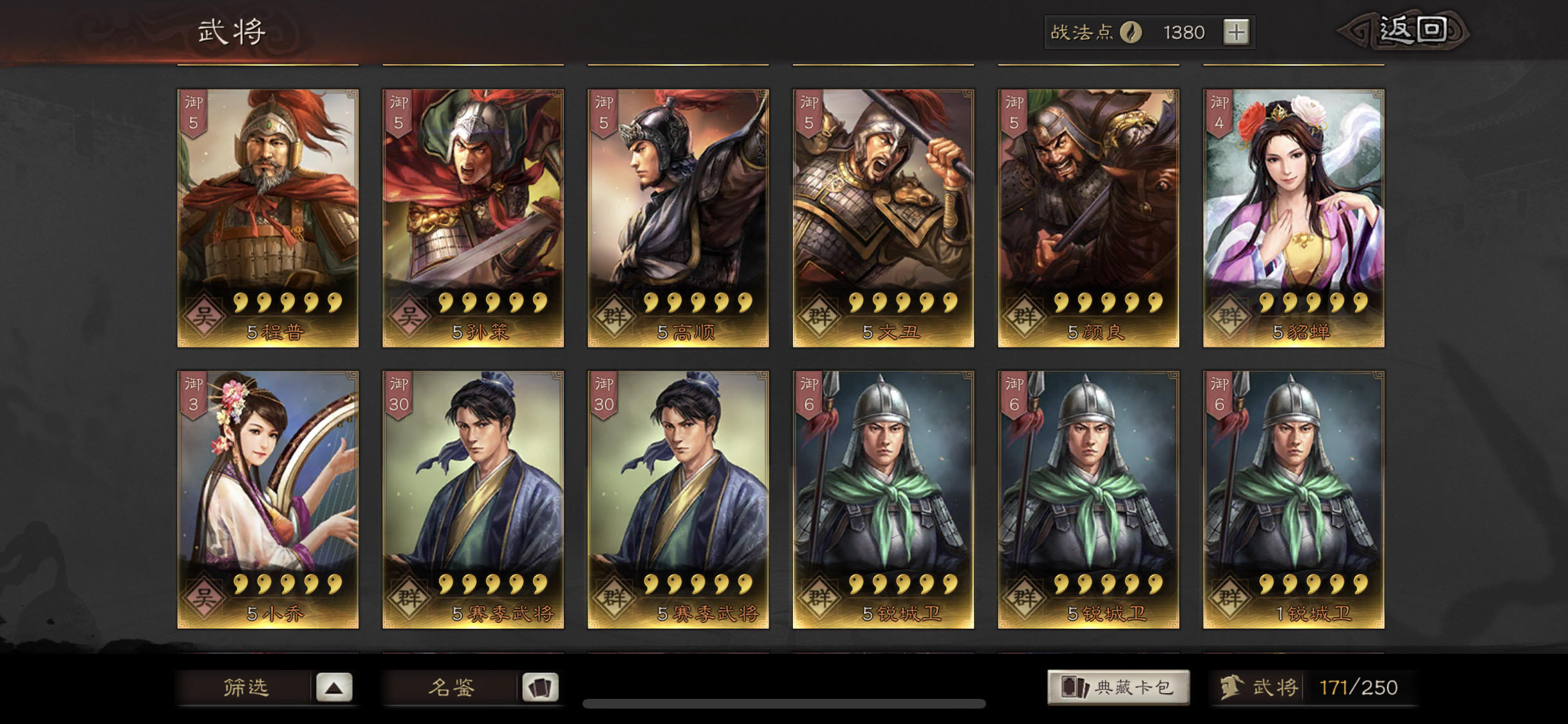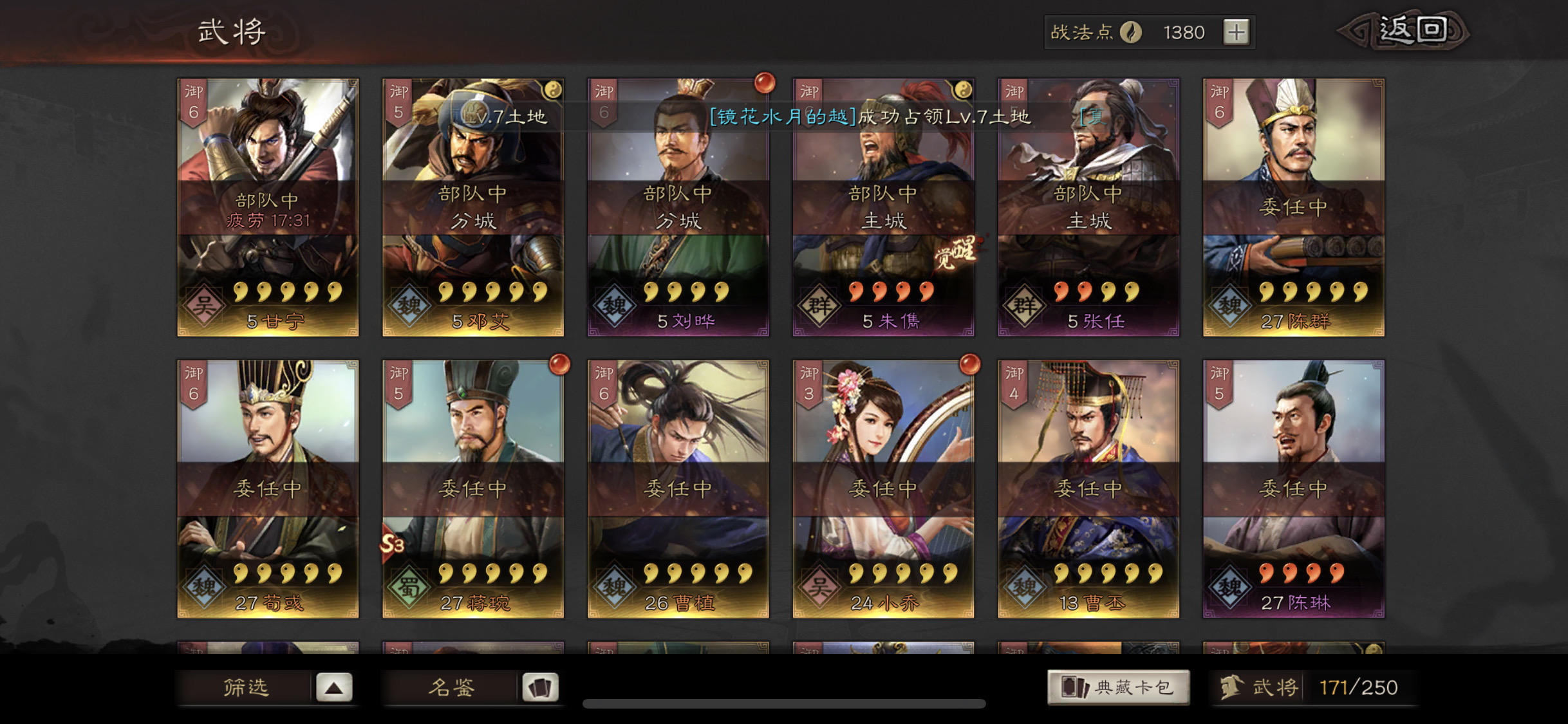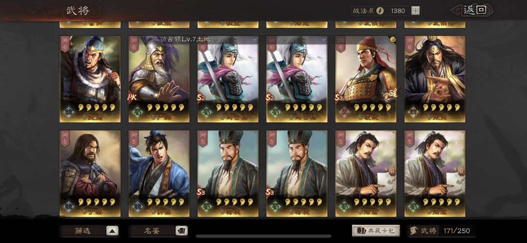 a战法都有紫将都有,大佬帮忙瞧瞧能不能配个四五队,谢谢啦