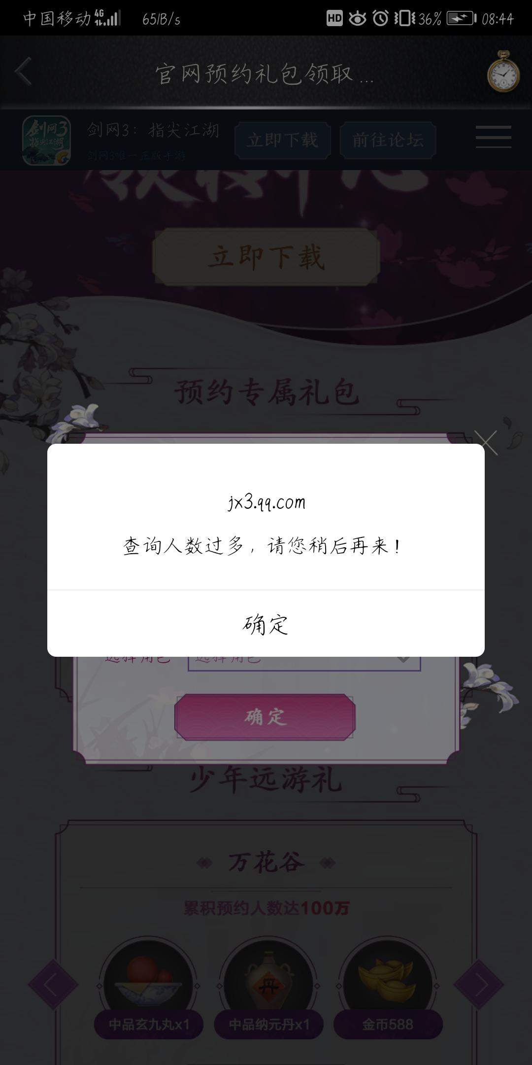 我就想问问,礼包码和预约礼包,到底还让不让领了,领取地址不在游戏而是在官网里我也就不说啥了,但你起码也得让领啊,哪次进去都说人数过多,你游官网就这么火?每时每刻都爆满?