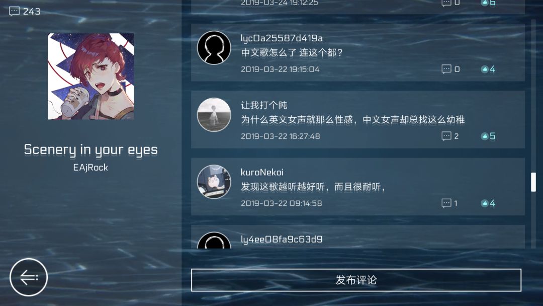 封面加分!跟上一首摇滚乐来说,这首歌就显得平庸了许多,虽然同一乐团但这首歌却显得力量不是很足,总的来说还是有点水吧。但封面真的不错,先说明一下,这是Cherry他们曾经的乐团全员哦(主唱Cherry,贝斯手Joe,鼓手Kai和吉他手Xenon)。