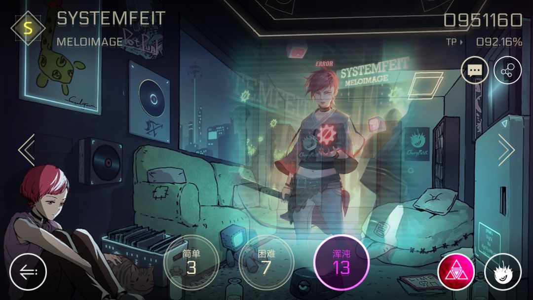 相信绝大多数玩家对于Cherry的角色信息可谓知之甚少,从主线的剧情也只能知道Cherry是单声用来顶包Paff的另一个偶像以及她跟Xenon貌似有一种说不清楚的关系。在这里小编先说一句,不是雷亚他不想说,而是Cherry的剧情爆点太多了没法说(所以这就是钱包-30的理由?)。当然这里的爆点跟主线关系不是很大(虽然有个关键cg),主要是借Cherry的视角来揭示Xenon和Cherry不为人知的过去,以及解释一些主线剧情背后的秘密。Cherry的曲风主要是流行音乐和轻摇滚,可以说Cherry的曲风是整个CytusⅡ中最柔和的一个,因而导致其难度也是最简单的,对于不太习惯CytusⅡ的萌新来说是一个不错的选择。那么按照惯例由我来为大家介绍一下歌曲质量与剧情。
