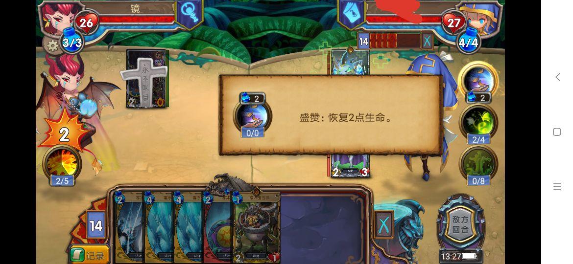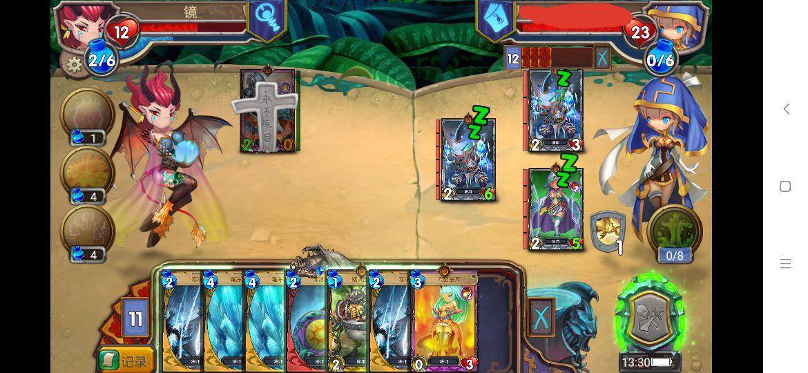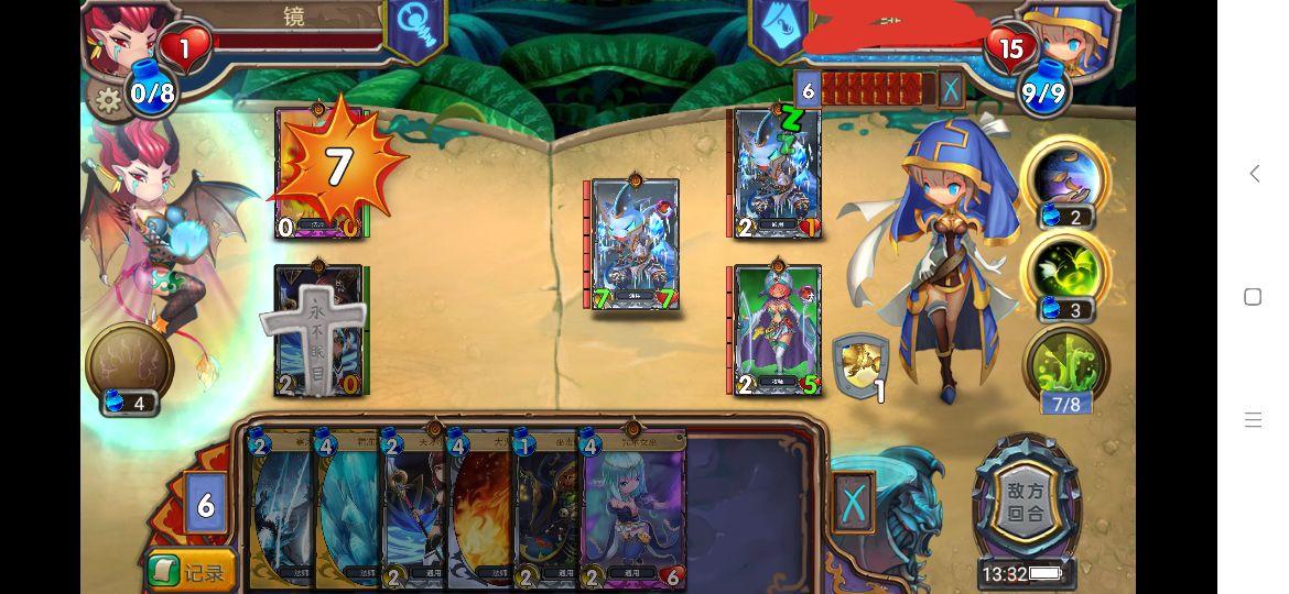的时候我们就要空过了,这个时候蛤蟆有很强的战斗力对面下怪 不管有没圣盾或者血过2都去换 哪怕打对面脸了我们也是赚的 同时剩余2费会解锁1技能。3费这里就不上图了。。。 下个2费怪 然后使用1技能 即可结束4费(小心牧师冰龙心火)
