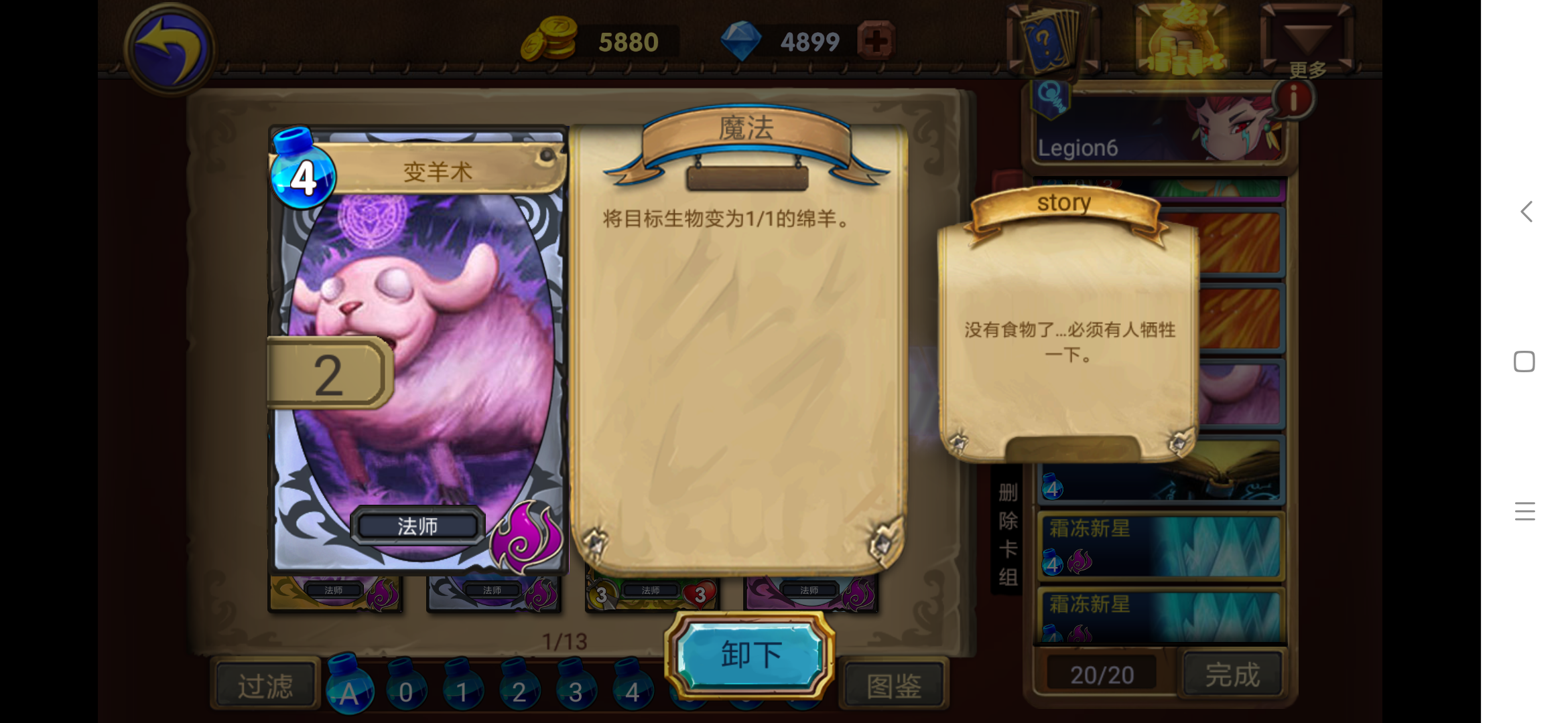 直到最后我们也没有能量使用羊和书但是羊可以在卡手时防止心火 书可以防止442 领主重生之门553 等冲锋 血量一般不会像上图被打到1。。。那是大逆风目前就更新到这里。。.有其他玩法欢迎讨论。。。目前法师还是比较弱势的。。