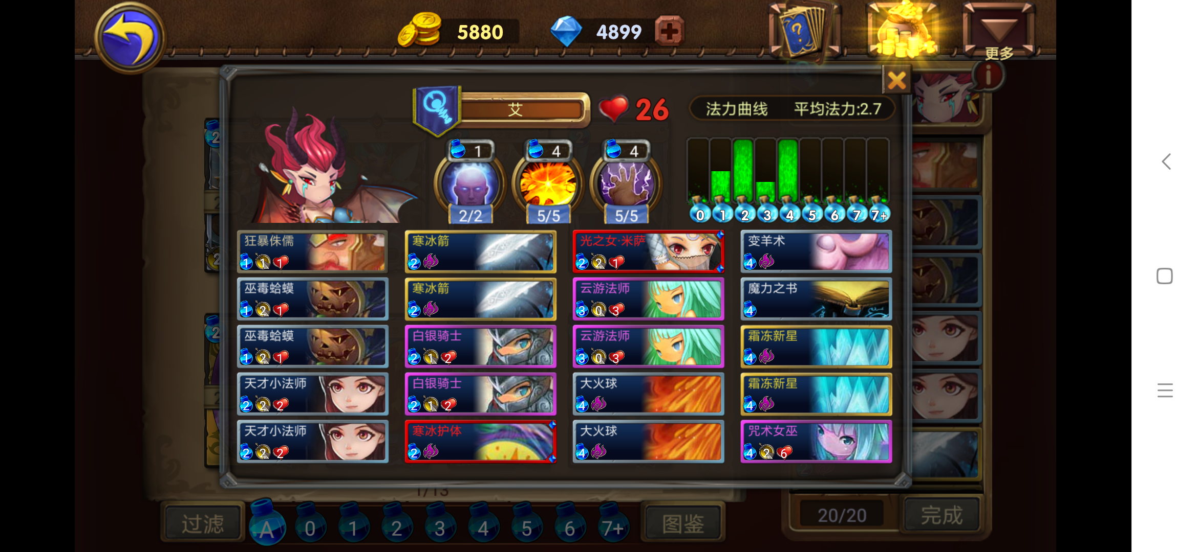 能活到这个时候 我们大概率会赢了 冰冻 寒冰箭 大招 此处打8(需要献祭)又或是 无敌 寒冰 大招打8 此时我们已经造成16血左右9费下云游法师 用 1技能 抽1 双火球14 (献祭)总共造成30血 因为前期对面很快就会满场 所以一般很少会有748等回血怪 有就羊了 以上仅仅假设。。实际作战 对面下火龙和我们抢血 很少会出现满血情况 即便如此我们也有足够的伤害打死