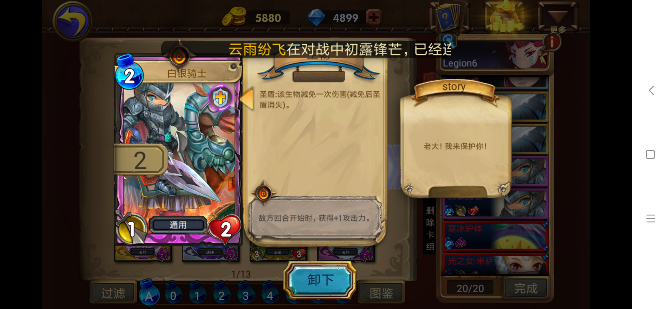 虽然伤害低,但是我们缺的就是伤害,最多交一张保命如果被冰冻了将无法使用技能。2费 白银骑士 光女