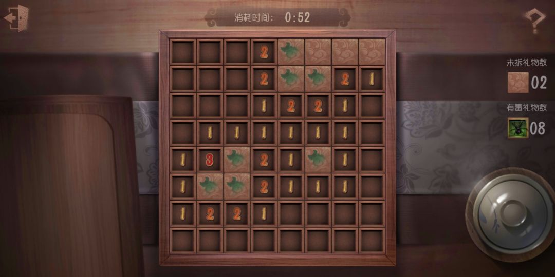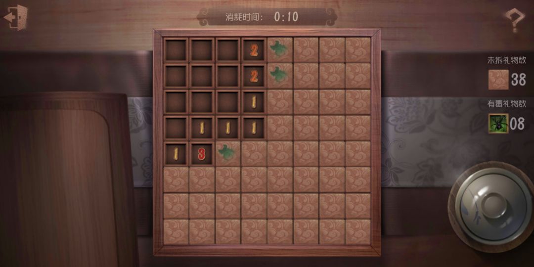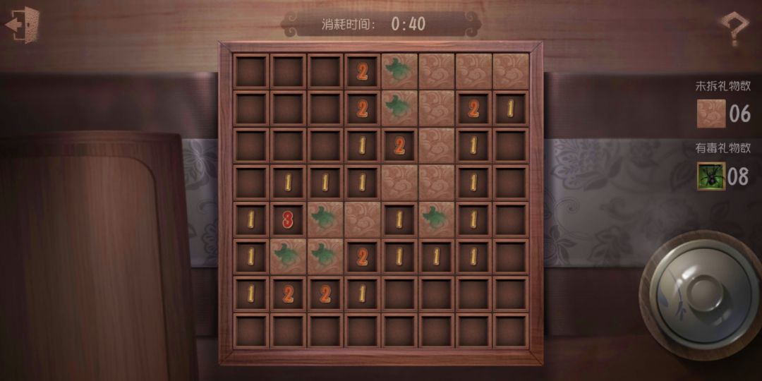 推荐选择最低难度,然后从中间四个(也就是上下左右三个的中心点)里选着开始才拆炸弹,切记一件事拆完雷马上摸一下茶壶,它会提示你雷的确切位置。还有一点,如果你在简单模式的情况下,安全拆完了雷周围方块没有被自动清除,那么说周围的方块里必有雷。那四个角落也可以拆,但最多拆三次就收手,摸一下茶壶。