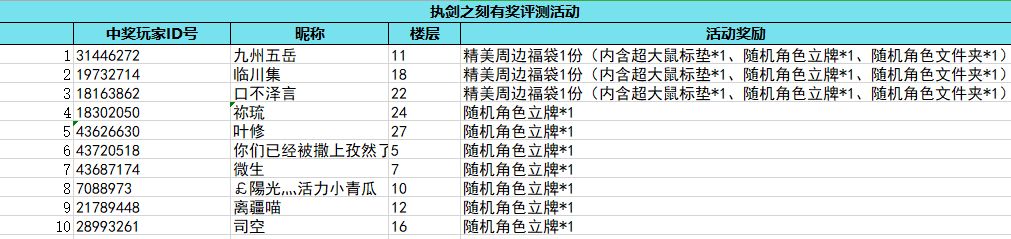 4.恭喜以上幸运小伙伴,没有获奖的小伙伴可以多多关注“执剑之刻”TapTap论坛,以后还会有更多更多的福利活动哦~