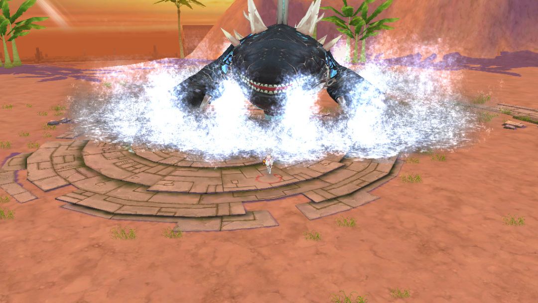 当它被激怒时,会使用其有力的爪子拍打地面,顿时天摇地动、泥浆四起。如果不注意躲避,将被其石化数秒,动弹不得。