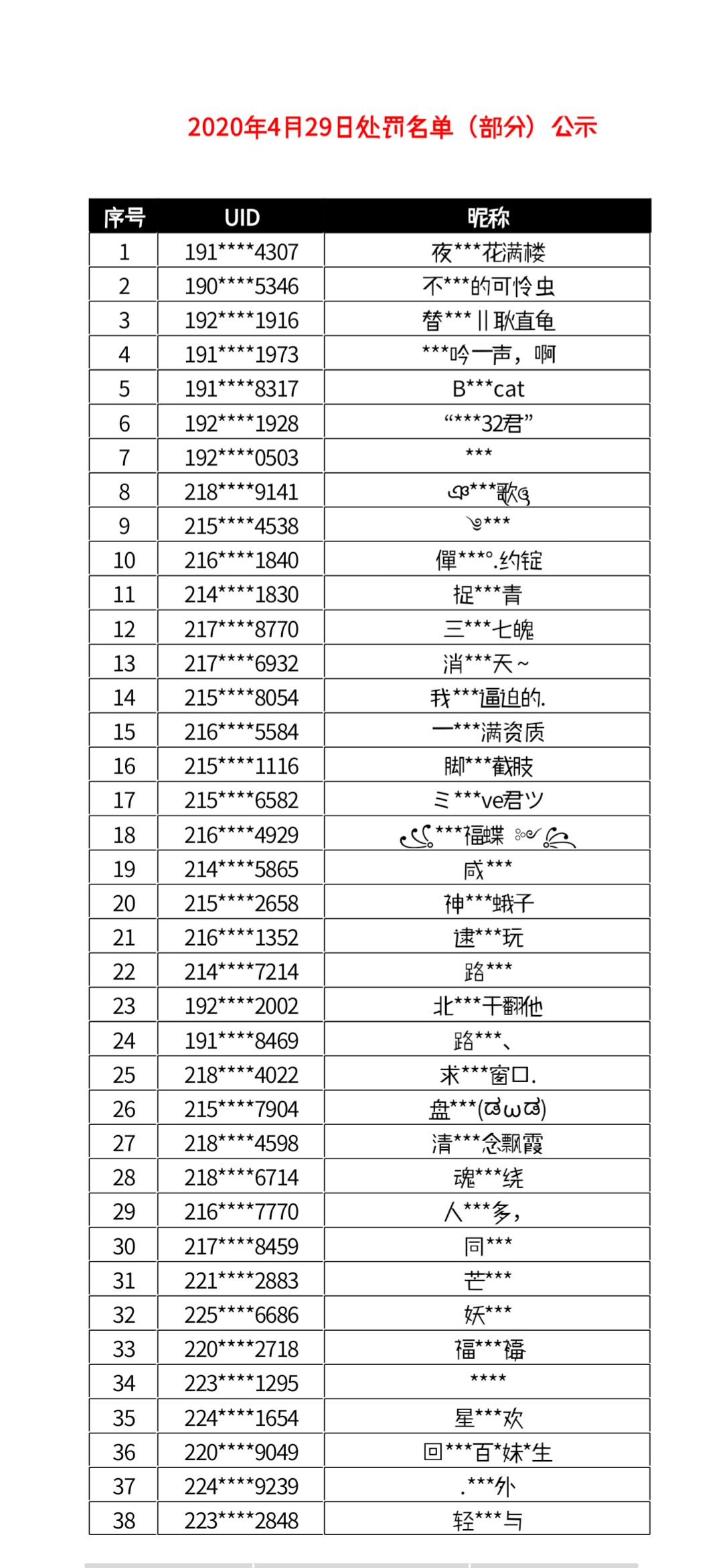 在游戏客服平台受理并整合玩家的举报,通过“游戏最新的安全机制+客服人工审查核实”。我们发现部分御灵师通过非法游戏的行为破坏游戏环境,严重影响了大家的游戏体验。核实名单由游戏安全团队进行了封禁处罚,封号后将会强制撤出所有占领擂台的妖灵。为表明我们打击非法游戏行为的决心,特此将部分举报查实处罚名单进行公示。