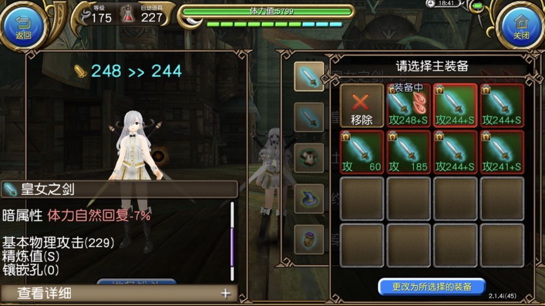 接受维生素B大佬的建议,假定按照244精炼S的飘飘剑(跟皇女保持面板一致,我也不知道飘飘最高是多少就先这么算吧),计算出来总ATK为4399(这数字有点梦回童年…),提升为(4399-4318)/4318=1.88%。