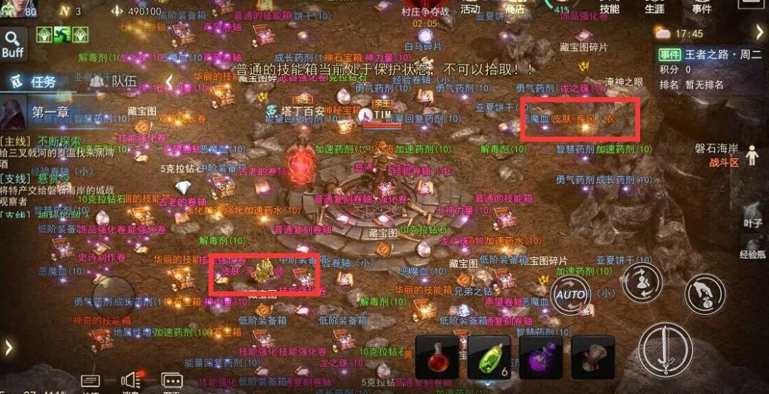 组队打完一个大BOSS,小编感觉自己要发财了,可是只得到了两个皮肤。不过没关系,还有这么多宝箱呢!